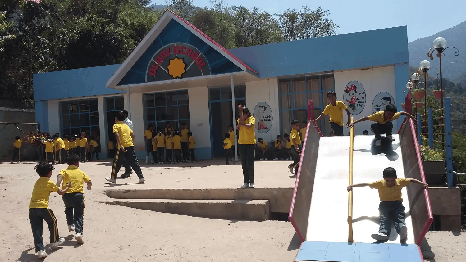Every morning these words eco beautifully across the surrounding mountains and fields as children chant them: